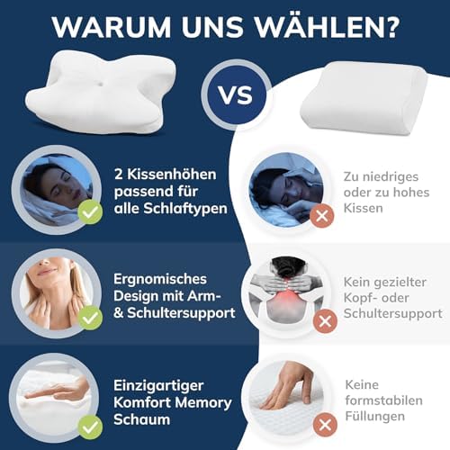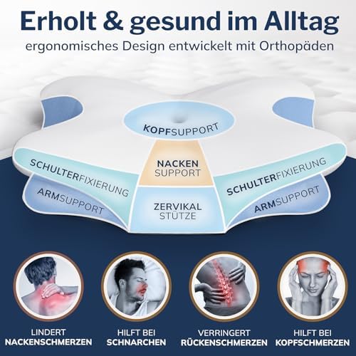 Dieses spezielle Kissen ist nicht nur bequem, sondern auch funktional. Es hilft, Nacken- und Rückenschmerzen sowie Kopfschmerzen zu lindern. Besonders geeignet für Menschen, die mit häufigen Beschwerden zu kämpfen haben und ein Kissen suchen, das gezielt Hilfestellung bietet.