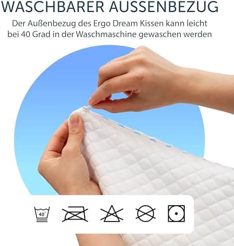 Der Bezug ist abnehmbar und bei 40 °C waschbar. Hergestellt aus schadstoffgeprüften Materialien, ist das Ergo Dream Kissen perfekt für Allergiker geeignet. Das orthopädische Kissen ist langlebig, nachhaltig und einfach zu reinigen – für hygienischen Schlaf ohne Kompromisse.
