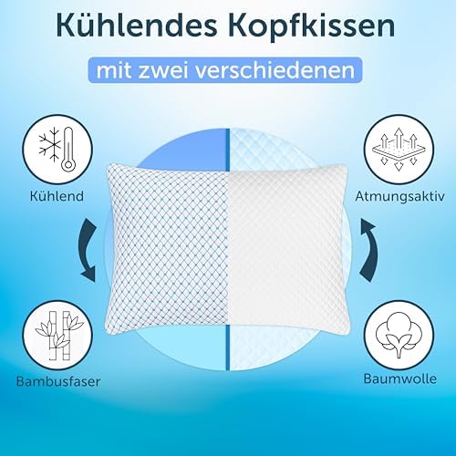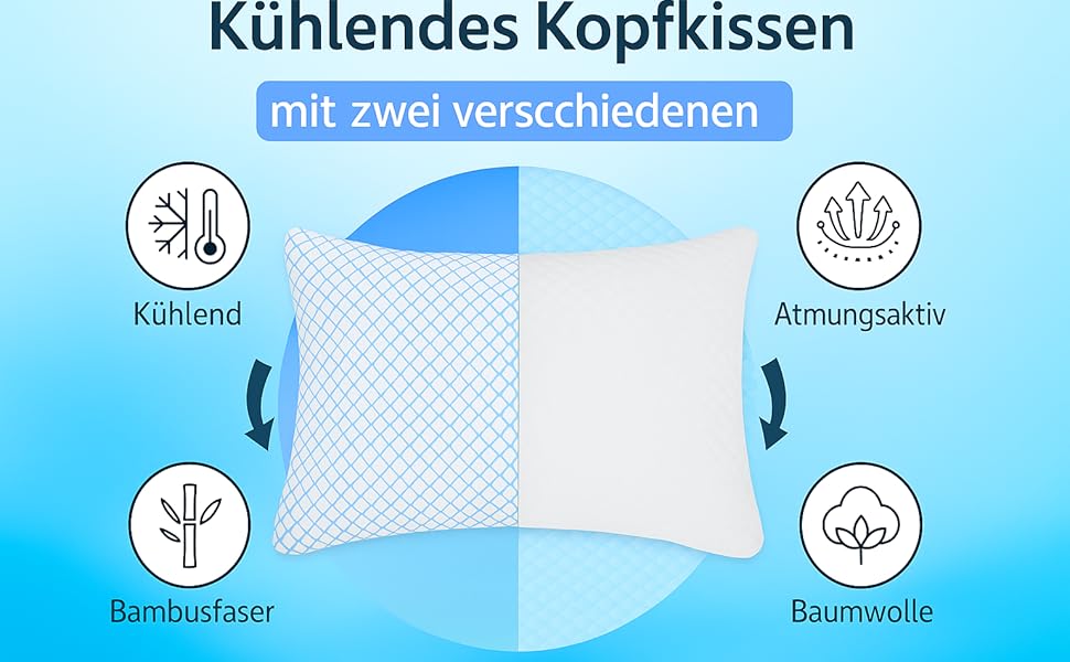 Das atmungsaktive Bezugsmaterial aus Bambus-Baumwolle sorgt dafür, dass das Ergo Dream Kissen bei Nacht schwitzen oder Hitzewallungen keine Chance haben. Es reguliert die Temperatur und schafft ein angenehmes Schlafklima, das besonders in den Sommermonaten geschätzt wird.