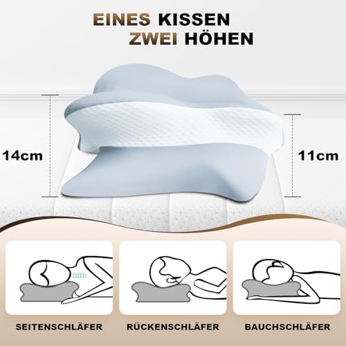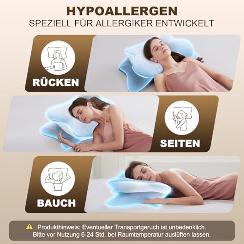 Ergonomisches Nackenkissen von – OEKO-TEX® geprüft für Allergiker – Orthopädisches Kopfkissen für erholsamen Schlaf (Gr