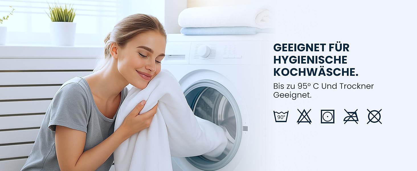 - Pflegeleicht: Waschbar bei 95 °C für hygienische Sauberkeit, bleibt auch nach vielen Wäschen weich und formstabil.