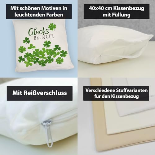 Der eingearbeitete Spruch “Glücksbringer” macht dieses Kissen zu mehr als nur einer Dekoration. Es verkörpert die positive Symbolik des Glücksklees, der für Hoffnung, Gesundheit und Genesung steht. Es ist die perfekte Ergänzung, um fröhliche und positive Gedanken in jeden Raum zu bringen.