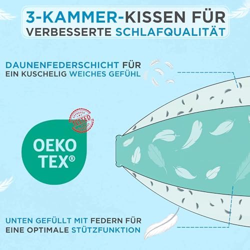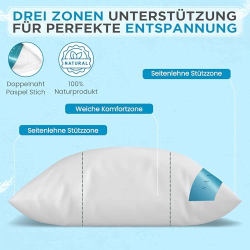 Genießen Sie höchste Schlafqualität mit unserem 3-Kammer-Kissen und wachen Sie erfrischt und energiegeladen auf. Perfekt für jeden, der Wert auf einen komfortablen Schlaf legt!