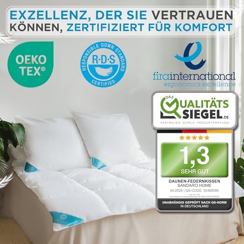 Unser Daunenkissen wird ausschließlich mit europäischen Daunen und Federn gefüllt, die nach höchsten Umweltstandards zertifiziert sind. Durch den Einzelnen Einsatz von Materialien, die den Responsible Down Standard (R.D.S.) sowie FIRA International Zertifikaten entsprechen, garantieren wir Ihnen nicht nur ein hervorragendes Schlafgefühl, sondern auch Nachhaltigkeit und ethische Verantwortung.