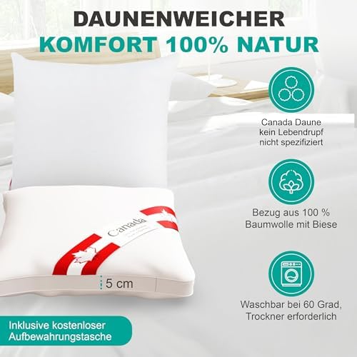 Investieren Sie in Ihr Schlafwohl mit dem Premium Kanada Daunen Kissen. Mit seiner hochwertigen Verarbeitung, den besten Materialien und einem durchdachten Design wird dieses Kissen sicher Ihr schlafendes Wohlbefinden revolutionieren. Gönnen Sie sich den Luxus eines jederzeit anpassbaren und komfortablen Kissens, das Ihre nächtliche Erholung auf ein neues Level hebt.